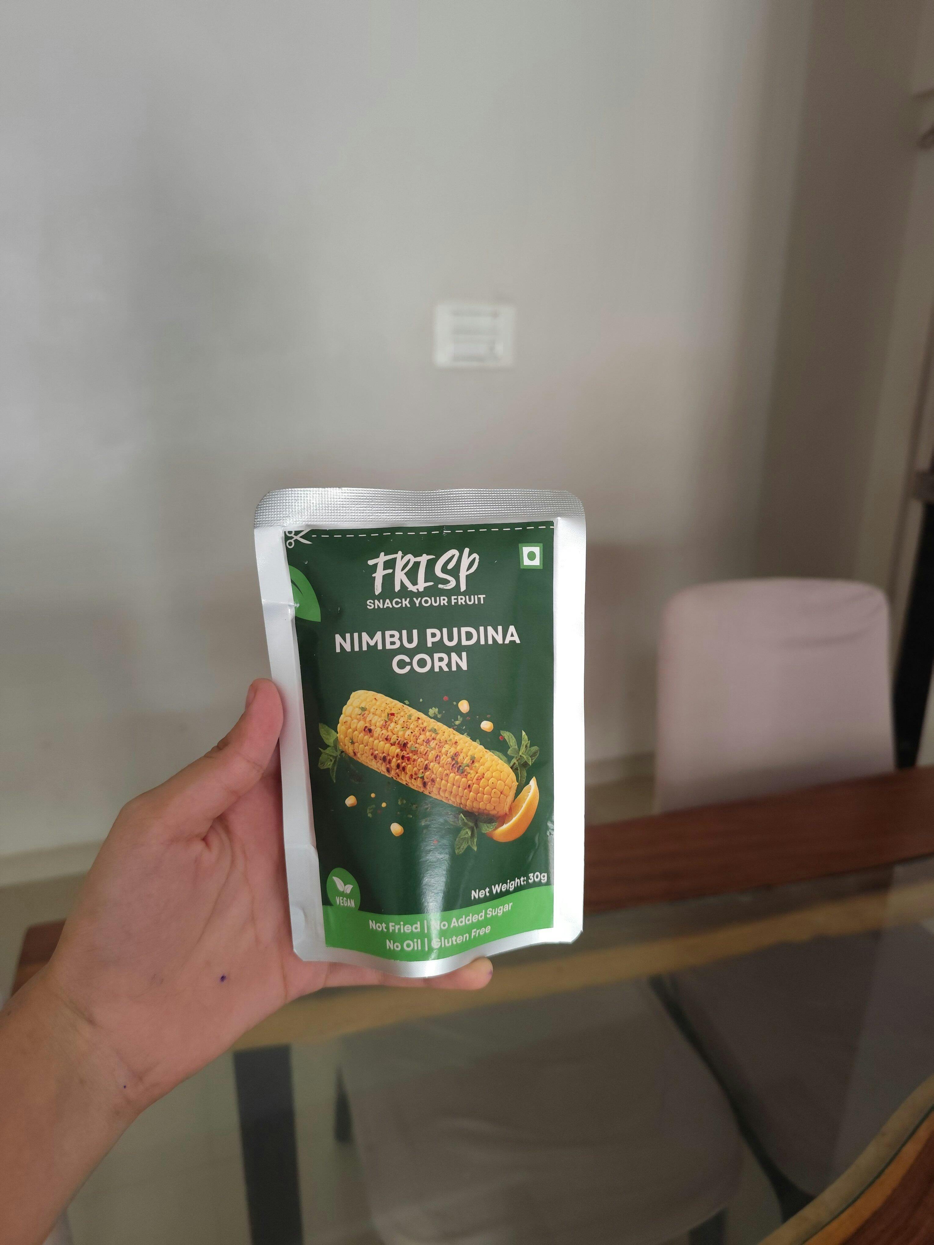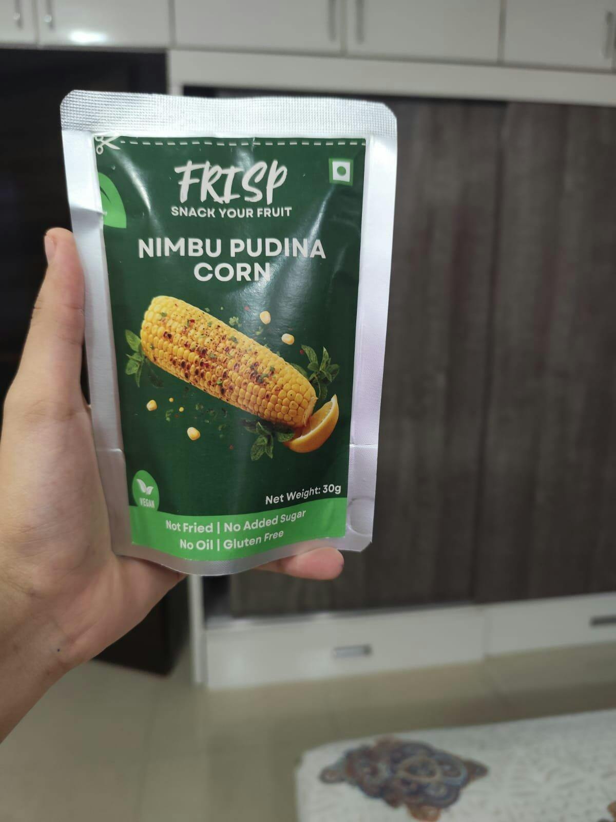 Frisp Nimbu Pudina Corn is a light, tangy snack made from premium boiled corn, tossed with a blend of lemon and fresh mint seasoning. Perfect for guilt-free munching anytime, anywhere.